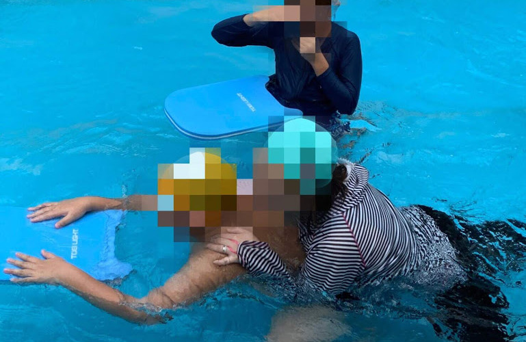 ビート板を上手に使って泳ぐお友達、職員に水かけをして遊ぶお友達、今日も大満足なお出かけになりました!
